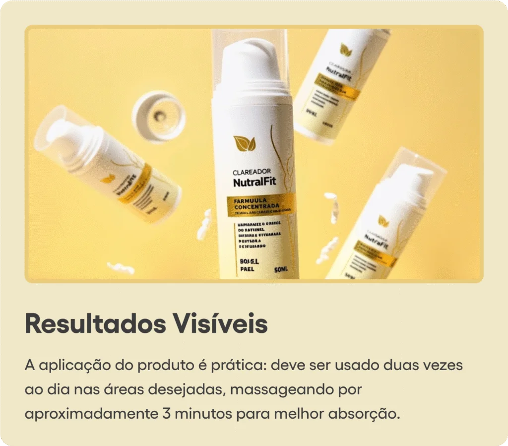 Clareador NutralFit possui ingredientes 100% naturais que realmente fazem a diferença e proporcionam resultados surpreendentes.